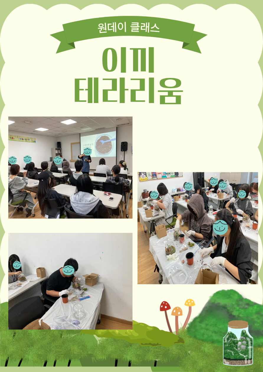 목록 [광주시 꿈드림] 이끼 테라리움 원데이클래스 작성자 최고관리자 작성일 25-11-06 11:10 | 조회 175 | 댓글 0 본문 광주시 농업기술센터와 연계하여 이끼 테라리움 원데이 클래스가 열렸습니다!(ノ◕ヮ◕)ノ*:・゚✧ 이전글다음글 댓글목록 0 등록된 댓글이 없습니다. 목록